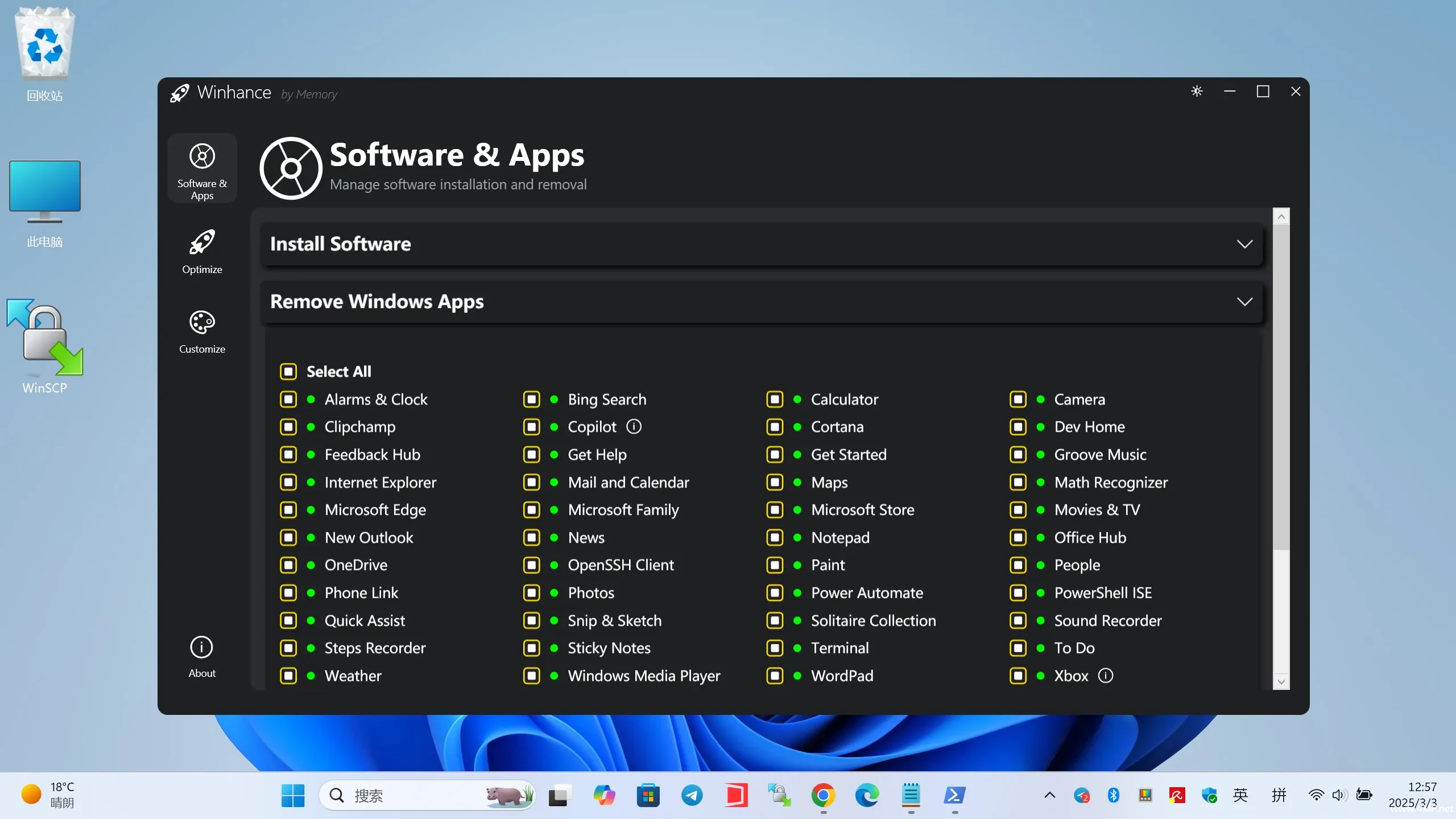 Winhance深度优化系统、清理垃圾、加速网络、增强游戏体验适合想要全面提升 Windows 11 体验的用户