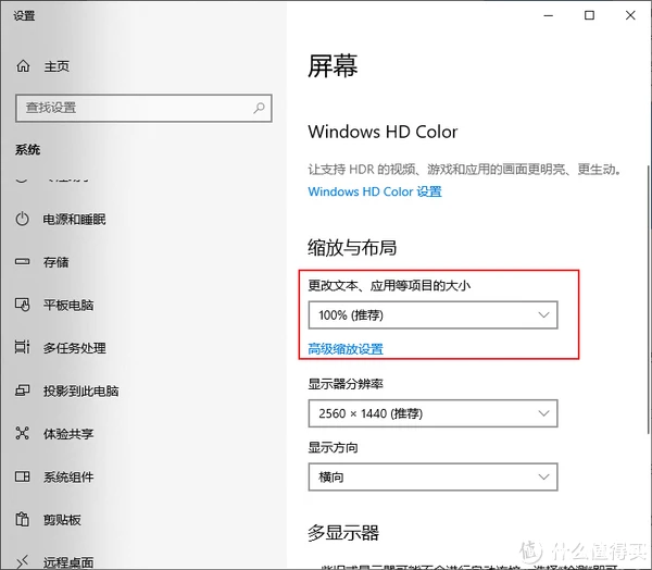 在“缩放与布局”下,您可以看到一个名为“更改文本、应用等项目的大小”的选项。默认情况下,这个值可能是100%(推荐)。