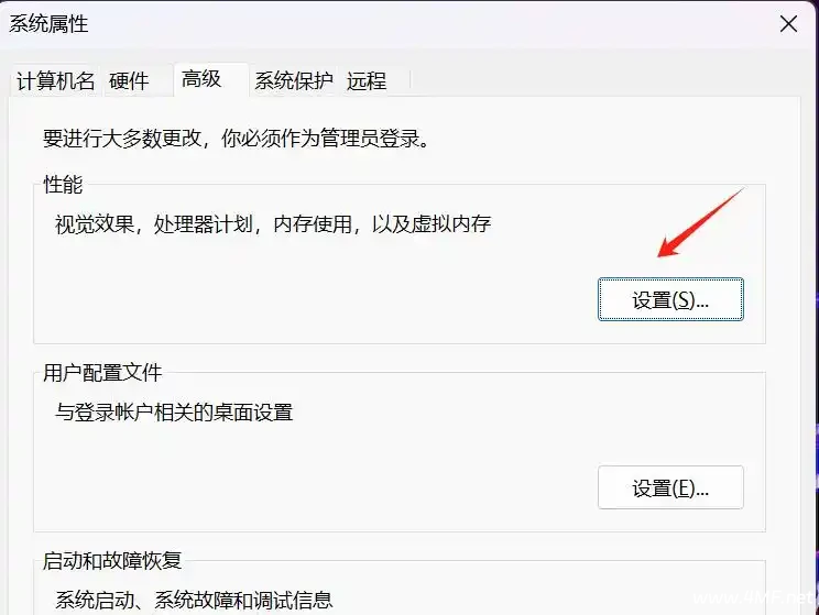 - 在 系统属性 窗口中,切换到 高级 选项卡,点击 性能 下的 设置 按钮。