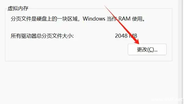- 在 性能选项 窗口中,切换到 高级 选项卡,点击 更改 按钮。