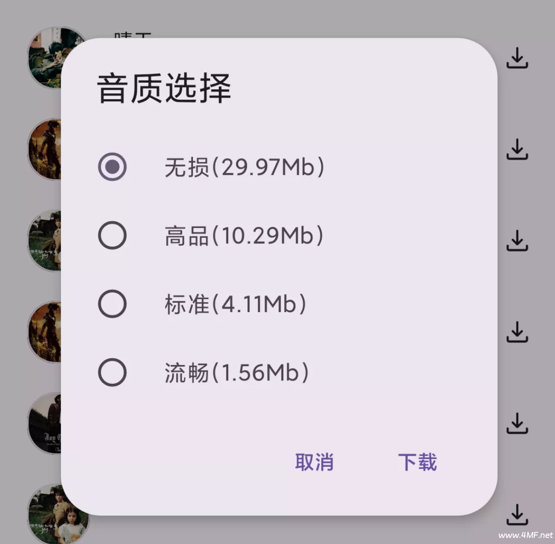 3、除了漂亮简洁的UI风格之外,另一个特点就是支持下载,最高无损。