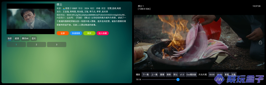 内置多线路1080P资源线路,操作还是经典的TVbox搜索聚合播放的操作