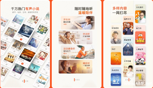 包括:相声评书、人文国学、娱乐资讯、儿童教育、情感生活、健康养生、脱口秀、广播剧等娱乐类节目