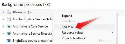 识别资源密集型进程并禁用它们。为此,右键单击流程并选择“结束任务”。