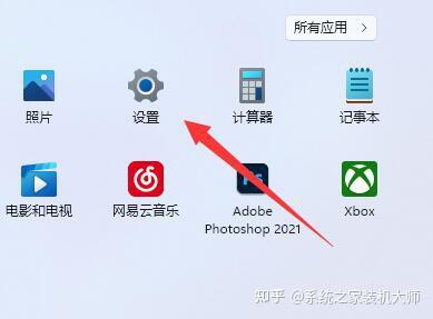 2、接着在开始菜单里打开“设置”。