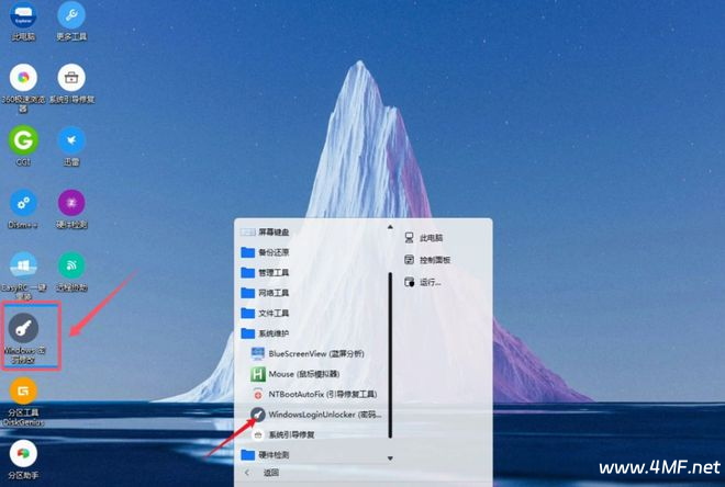 桌面上会有一个名为“Windows密码修改工具”的快捷方式,双击打开它。