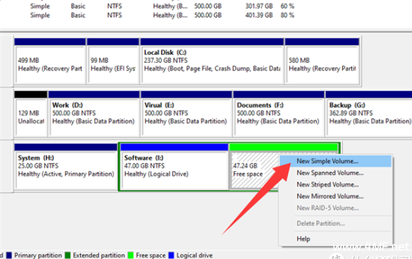 - 右键点击 → 选择【新建简单卷】