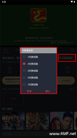 3、如果加载速度过慢,可以点击线路切换,点击“确认”即可